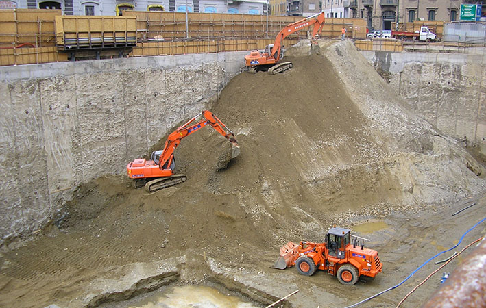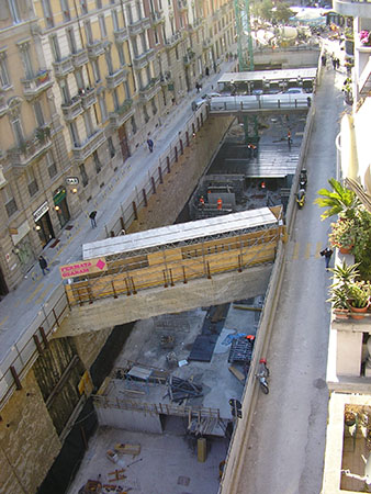 Milano - Parcheggio sotterraneo di corso Manusardi: scavo con puntoni di contrasto orizzontali
