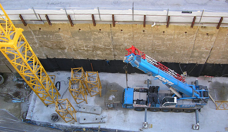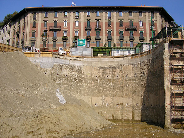Milano - Parcheggio sotterraneo di via Assietta: palificata di sostegno dello scavo