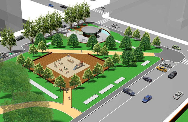 Milano - Parcheggio sotterraneo di largo Brasilia: rendering della sistemazione superficiale