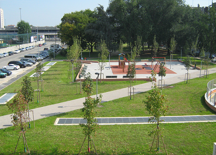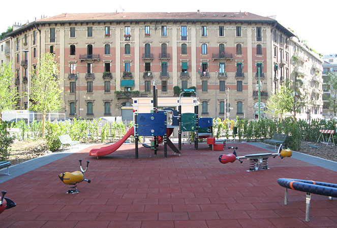 Milano - Parcheggio sotterraneo di via Benedetto Marcello: vista dell'area giochi soprastante il parcheggio ultimato