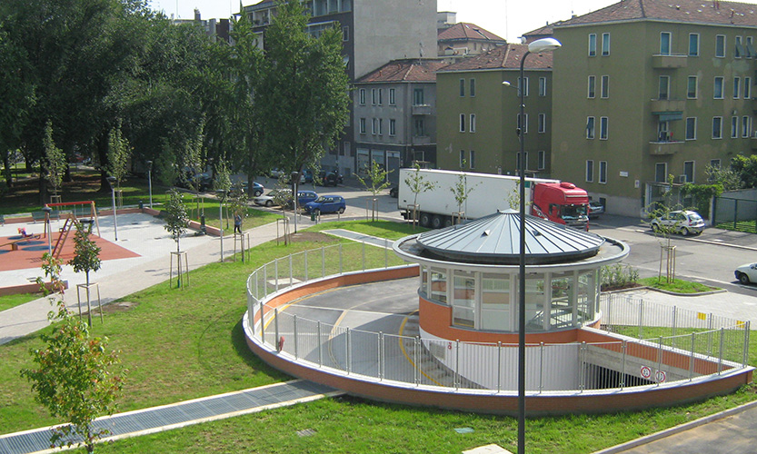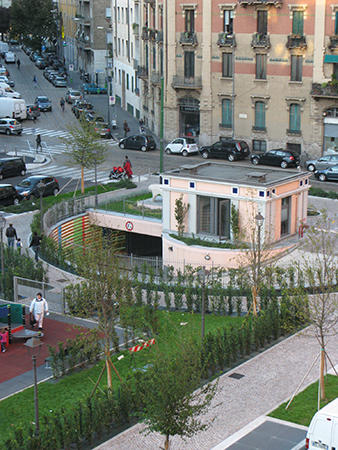 Milano - Parcheggio sotterraneo di via Assietta: vista della sistemazione superficiale