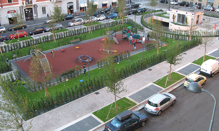 Milano - Parcheggio sotterraneo di via Benedetto Marcello: vista della sistemazione superficiale a lavori ultimati