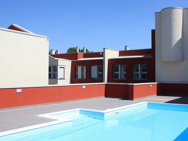 Milano - Co-housing via Giudice Donadoni: scorcio della piscina
