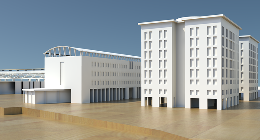 Biasca(Cantone Ticino, Svizzera) - Insediamento residenziale temporaneo per operai: modello virtuale
