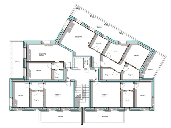 Milano - Edificio residenziale-commerciale in via Bazzi: pianta piano tipo