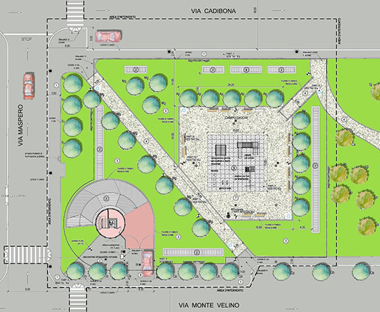 Milano - Parcheggio sotterraneo di via Monte Velino: pianta della sistemazione superficiale