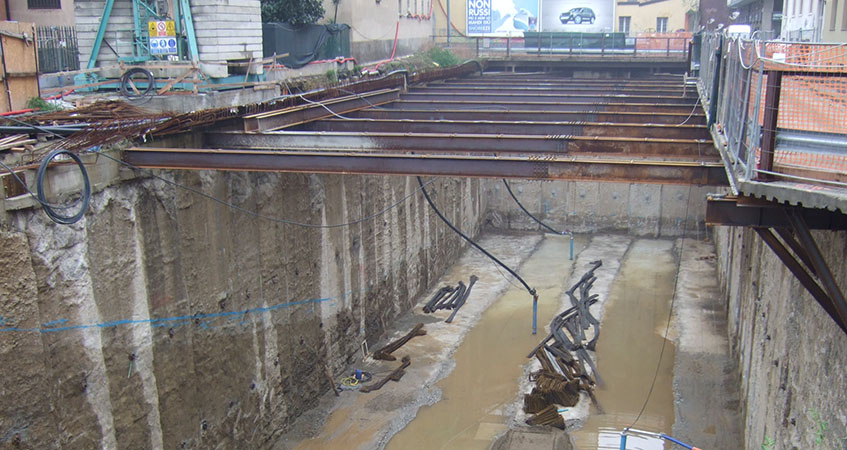 Milano - Parcheggio sotterraneo di corso Manusardi: scavo con puntoni di contrasto orizzontali