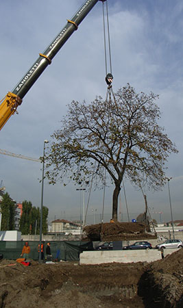 Milano - Parcheggio sotterraneo di via Monte Velino: operazioni di trapianto di un albero ad alto fusto