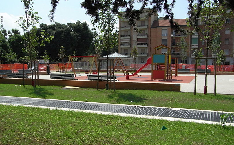 Milano - Parcheggio sotterraneo di via Benedetto Marcello: vista dell'area giochi soprastante il parcheggio ultimato