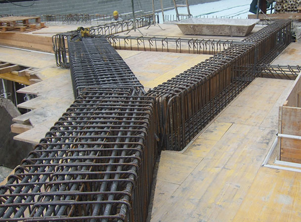 Milano - Parcheggio sotterraneo di via Ozanam: dettaglio dell'armatura metallica degli appoggi del solaio di copertura all'interno dei diaframmi perimetrali