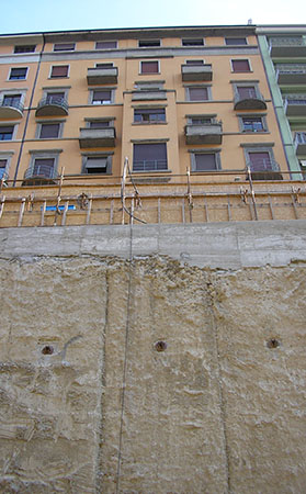 Milano - Parcheggio sotterraneo di via Assietta: palificata di sostegno dello scavo