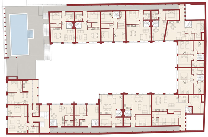 Milano - Edificio residenziale-commerciale in via Bazzi: pianta piano tipo